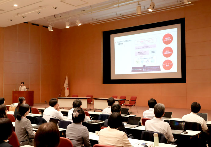 2025年度は金子恵美氏をお招きし、「全員活躍推進のフェーズへ~共働き・共育てが当たり前の社会へ~」をテーマに開催し、全員が個性を活かしながら最大限力を発揮できる組織への変革について考えました。